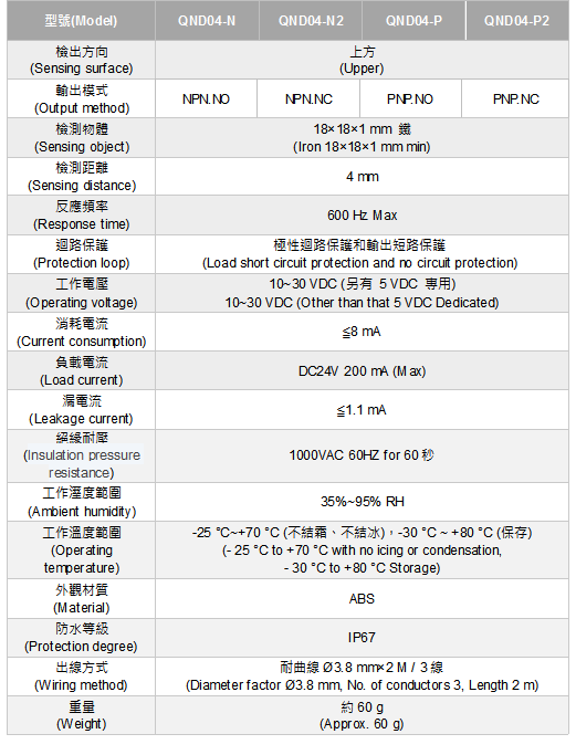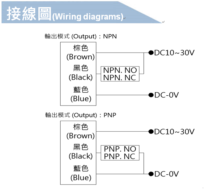 輸出模式:NPN.NO/NC和PNP.NO/NC