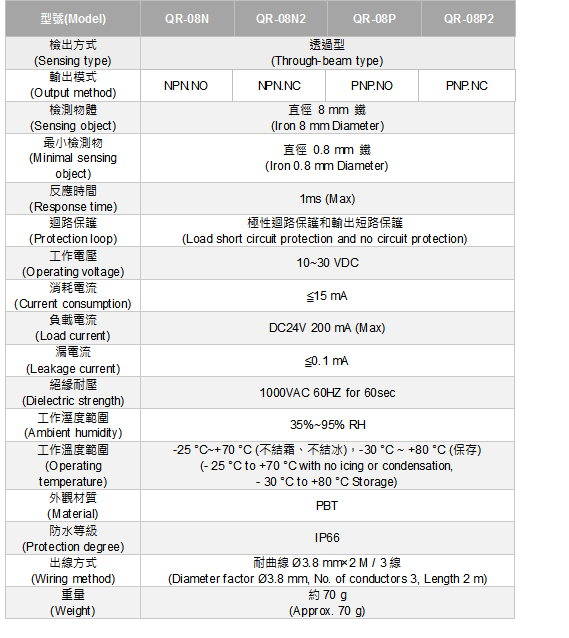 輸出模式:NPN.NO/NC和PNP.NO/NC