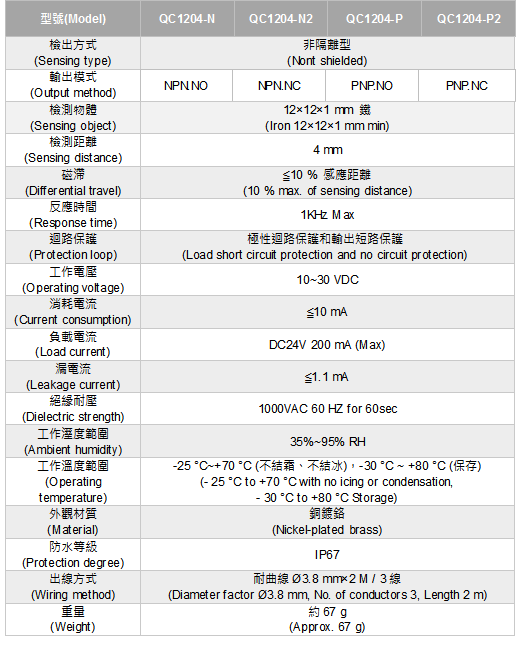 輸出模式:NPN.NO/NC和PNP.NO/NC
