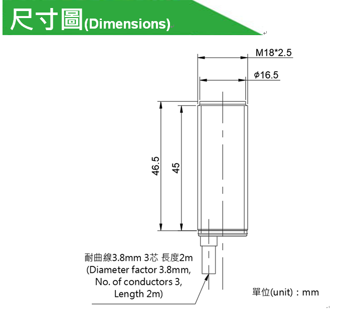 近接開關,專用於檢測金屬(例如:鐵、鋁、銅、…等金屬)物體作動,將檢測標的物的移動 資訊或存在資訊轉換成電性訊號。其優勢包括:非接觸式檢測,無損檢測物;使用壽命長;不受 檢測環境髒污、油、水...等影響;應答速度快;不受檢測物體表面的顏色影響。