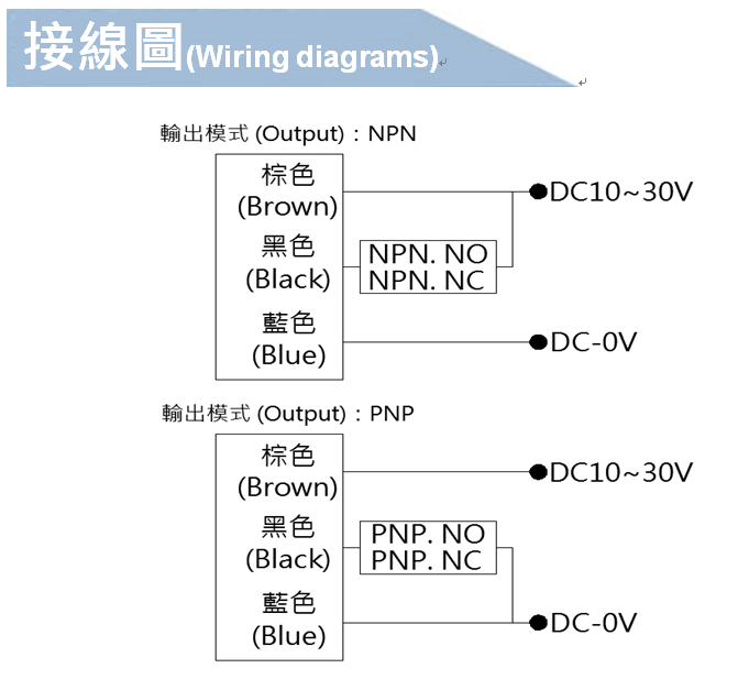 輸出模式:NPN.NO/NC和PNP.NO/NC