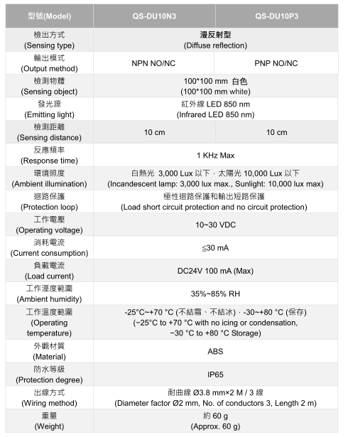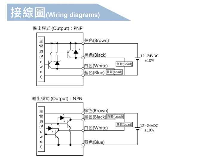 輸出模式:NPN.NO/NC和PNP.NO/NC