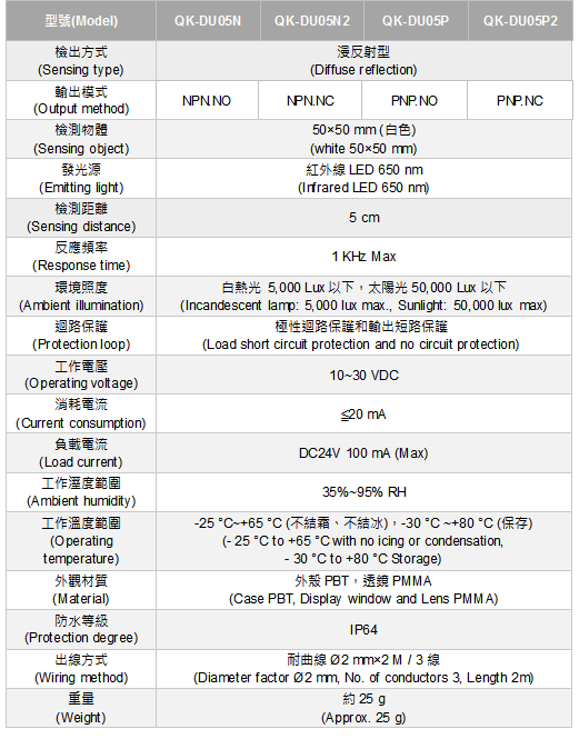 檢測距離:5cm(越深色物體檢測距離會縮短)