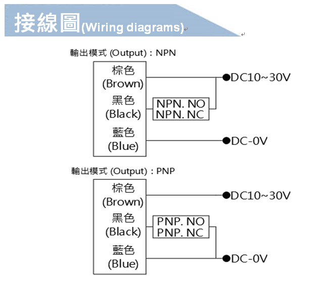 輸出模式:NPN.NO/NC和PNP.NO/NC