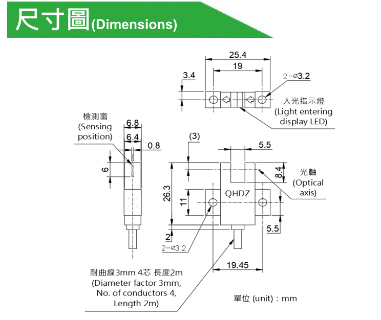 所謂光電素子,主要是指作為客戶機器內建用途的小型放大器內建光電感測器。與一般的放大器內建的光電感測器相同,用於檢測通過物體和定位,但檢測物體多半是稱之為「擋塊」的金屬片。擋塊若進入光電素子的檢測範圍,光電素子將以光學檢測,發出輸出訊號。