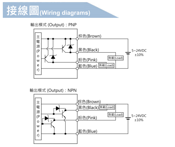 輸出模式:NPN.NO/NC和PNP.NO/NC