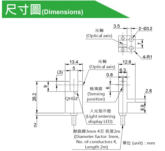 所謂光電素子,主要是指作為客戶機器內建用途的小型放大器內建光電感測器。與一般的放大器內建的光電感測器相同,用於檢測通過物體和定位,但檢測物體多半是稱之為「擋塊」的金屬片。擋塊若進入光電素子的檢測範圍,光電素子將以光學檢測,發出輸出訊號。