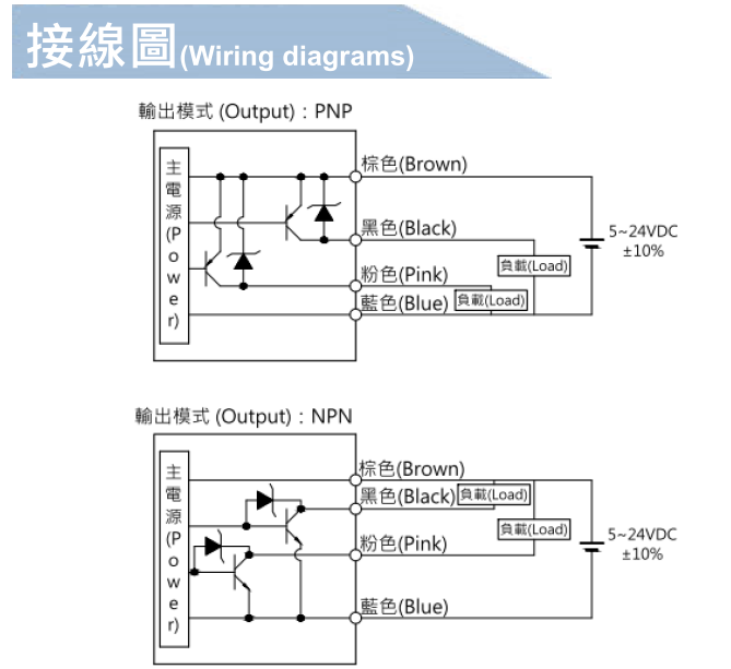 輸出模式:NPN.NO/NC和PNP.NO/NC