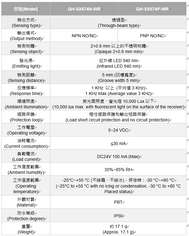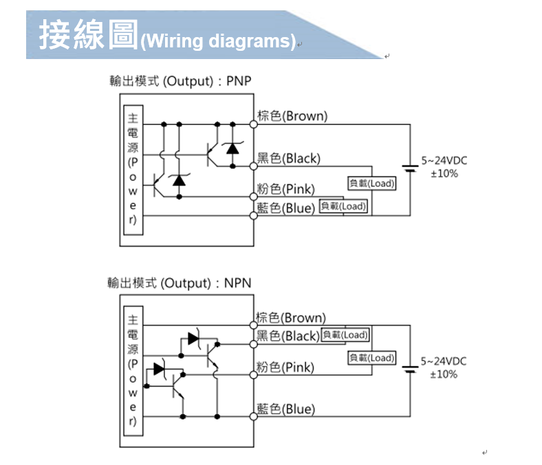 輸出模式:NPN.NO/NC和PNP.NO/NC