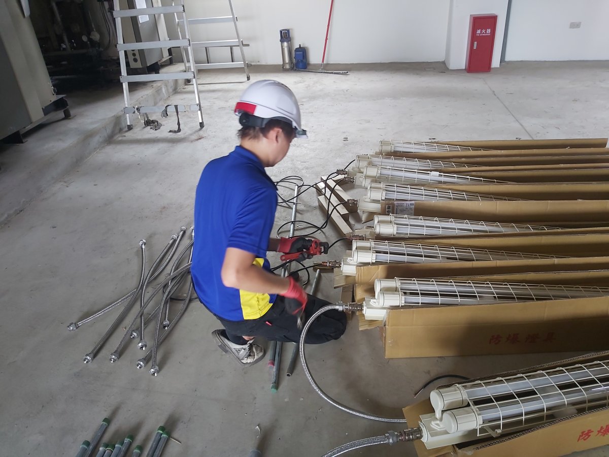 4. 防爆日光燈之出線端皆安裝防爆迫緊式電纜接頭,並於出線後進行電纜線的鎖固迫緊