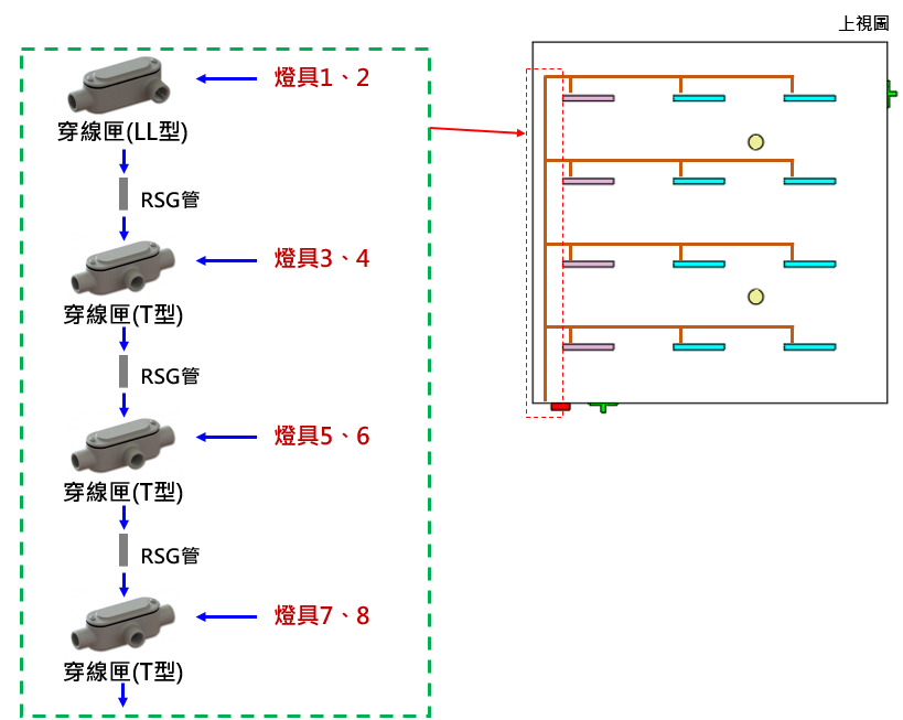2. 線路施工為導管(金屬管)施工,施工導管(金屬管)為鍍鋅鋼導線管,並符合CNS2606厚鋼管標準。